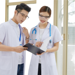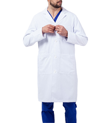 OEM معطف طبيب أبيض ممتاز مخصص للأطباء والممرضات بدلات منسوجة عالية الجودة مقاس XL مع شعار مخصص