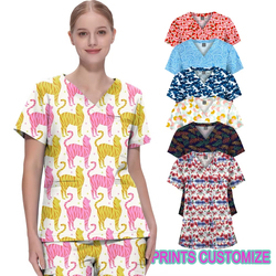 Scrub stampati personalizzati in fabbrica Top per donne divertenti medicali traspiranti scollo a V uniforme stampato da donna Set da infermiera
