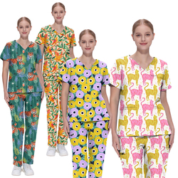 All'ingrosso Design personalizzato ospedale stampato Scrub infermieristico con cuore stampato da donna animali da infermiera uniformi stampate Set da infermiera